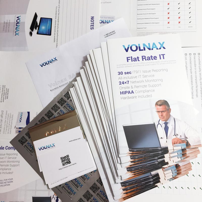 | Karasev Studio designed and delivered a broad array of marketing materials for the client, including brochures, business cards (complete with custom cases), mail pieces (including concept and advertising copy), letterheads and document templates, and even an applet that automatically generated machine-readable QR code stickers for the company's assets. | ![]() |
